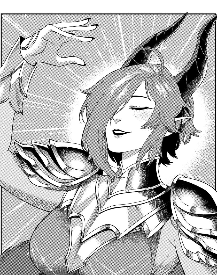 Her steel is sharp, but when the fury rises... she lets it all go. Scales burst forth. Horns crown her brow. Her tail lashes with primal fury. In that moment, she becomes something more, and something less. A creature of wrath. A dragon unbound. For those who cross her blade, there is no mercy. Only the roar of blood, and the silence that follows.